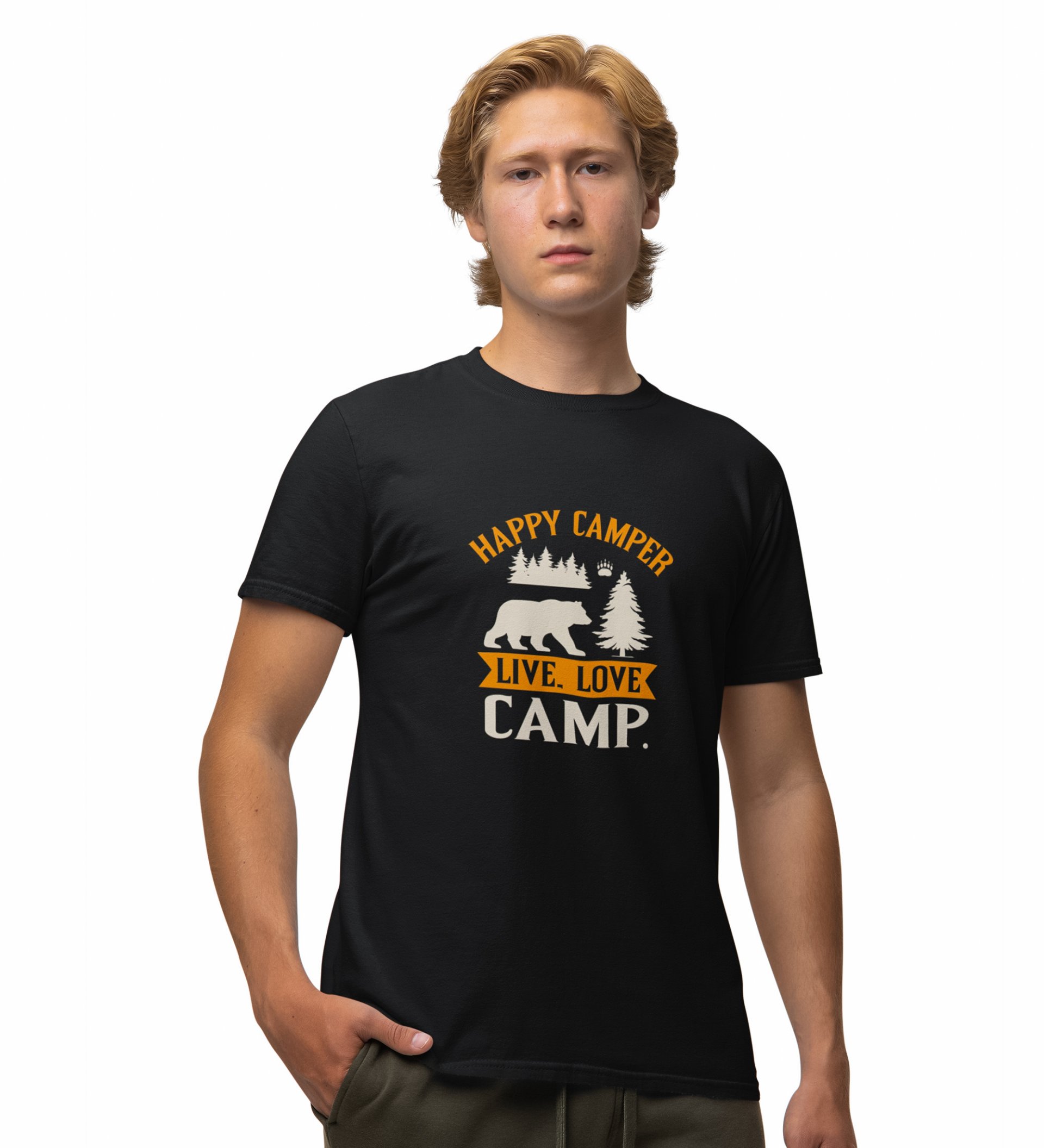 JD.TRENDS Live. Love. Camp Black Round Neck Cotton Half Sleeved Men's T-Shirt with Printed Graphics