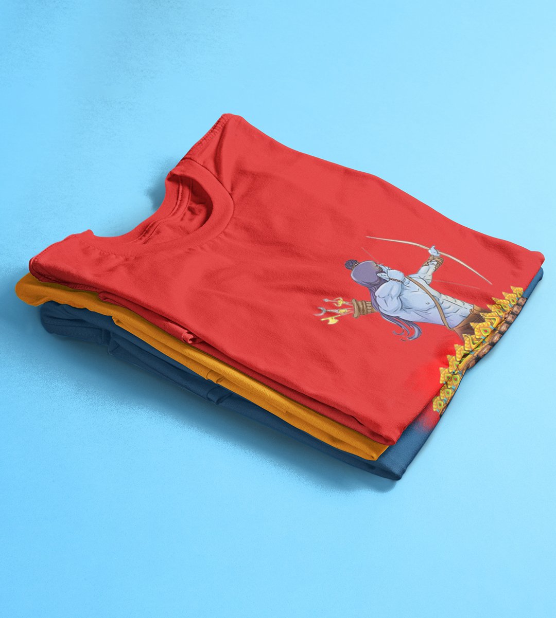 Navratri is a very auspicious festival for hindus. It takes place at the beginning of October and sometimes September. Enjoy the 9 days of festivities with full zeal and make yourself submerged in the love of Maa Durga. Navratri is also known as Durga Puja. And with this Tees, you can shine like a star during this festive season with our navratri themed cotton half sleeved Tshirts. You can pair our t-shirts with trousers and denim of your choice and make it a weekday smart casual or weekend wear. This is durable. This tshirt is smooth and soft which makes you comfortable to wear during all seasons. The printing in it is durable and odourless. It has five sizes, S,M,L,XL,XXL. The Tshirt colour is intact even after repeated washes. It can be kept in your wardrobe and hangers. Please avoid washing mashine to clean this Tee, it may affect the print. Hand wash only. We have brought you many navratri related designs printed on our different colour Tshirts to choose from. Grab it now.