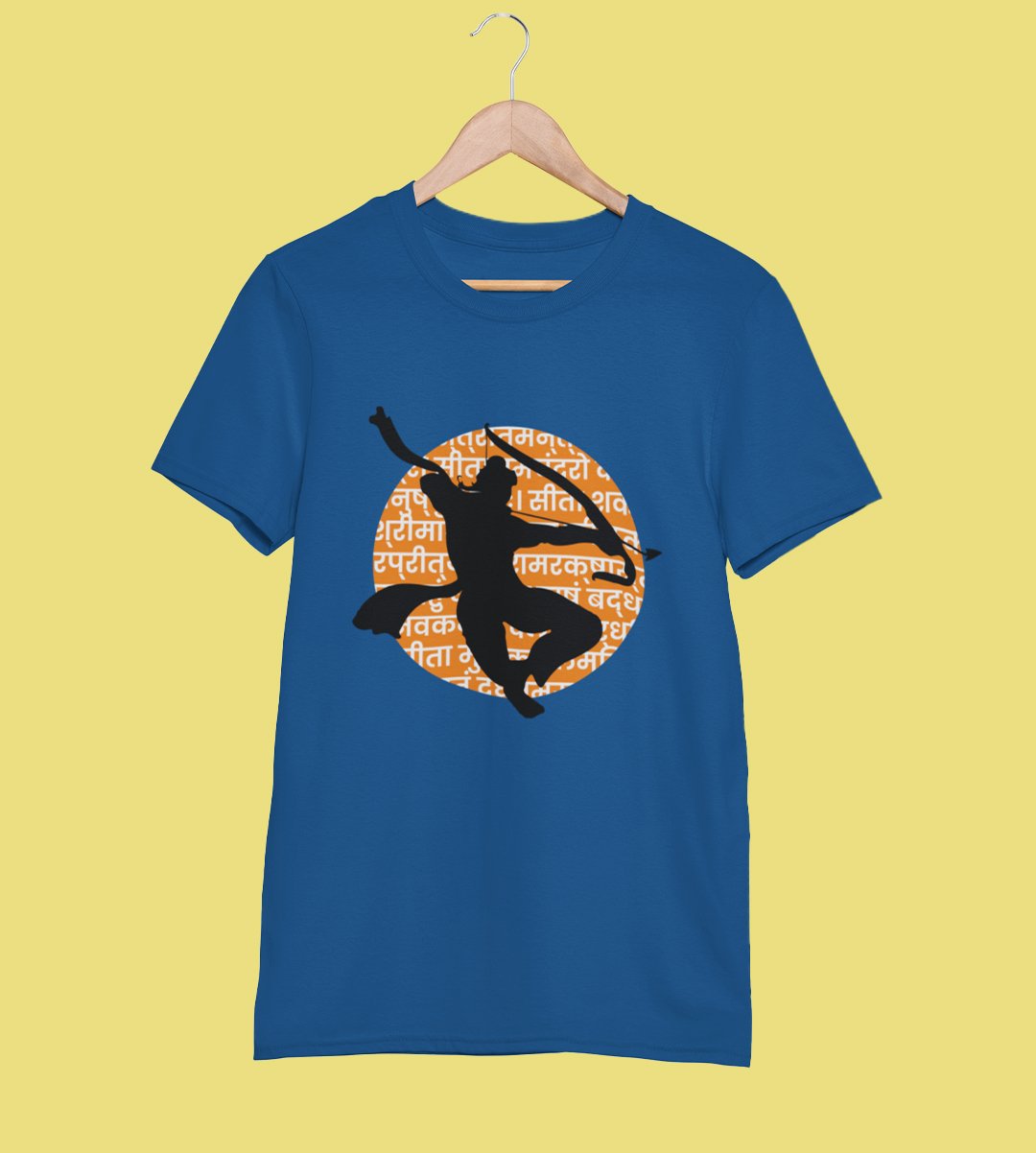Lord Ram (black shadow) printed unisex adults round neck cotton half-sleeve blue tshirt specially for Navratri festival/ Durga puja