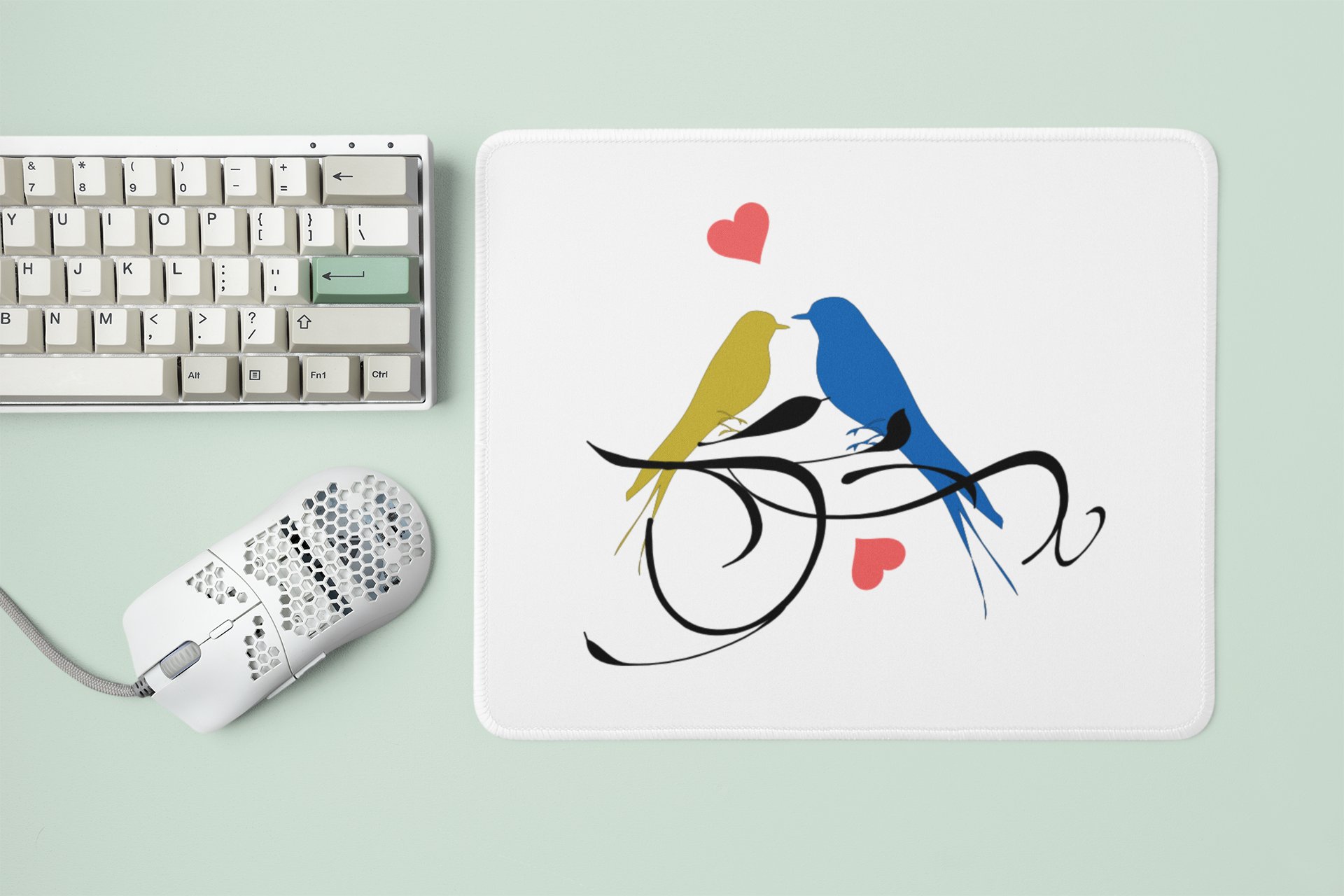Love Birds With Cute Heart- Designable Printed Mousepads(20cm x 18cm)
