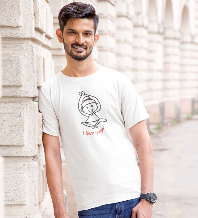 Love For Yoga White Round Neck Cotton Half Sleeved Men T-Shirt with Printed Graphics
