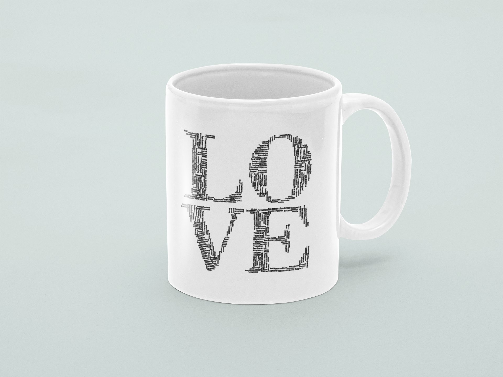 Love In So Many Letters - valentine themed printed ceramic white coffee and tea mugs/ cups
