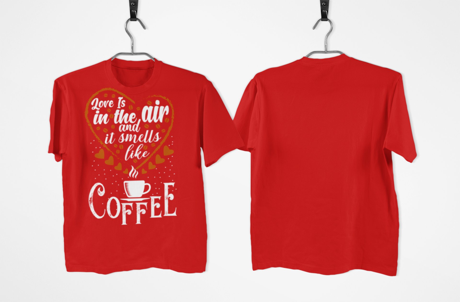 Love in the air and it smells like Coffee - Red - printed t shirt - comfortable round neck cotton.
