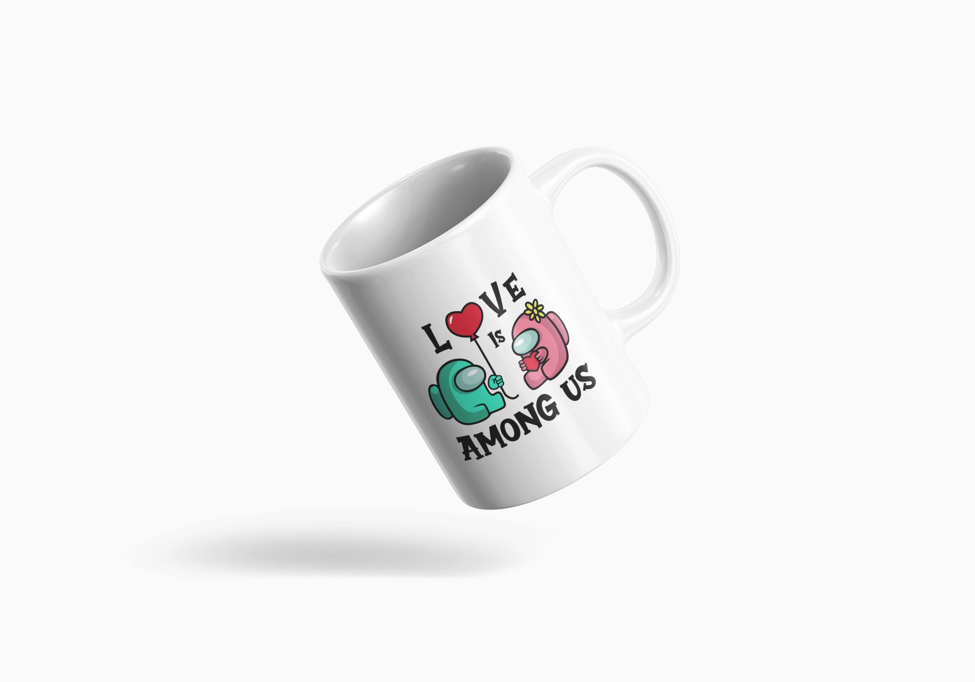 Love is among us, O designed as Balloon heart - animation themed printed ceramic white coffee and tea mugs/ cups for animation lovers