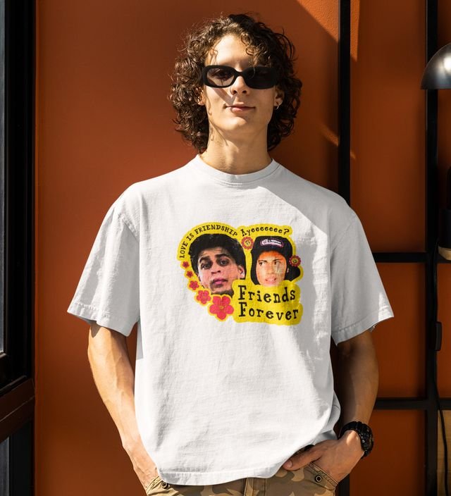Love Is Friendship White Round Neck Cotton Half Sleeved Men T-Shirt with Printed Graphics