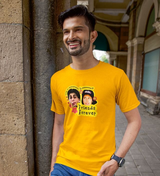 Love Is Friendship Yellow Round Neck Cotton Half Sleeved Men T-Shirt with Printed Graphics