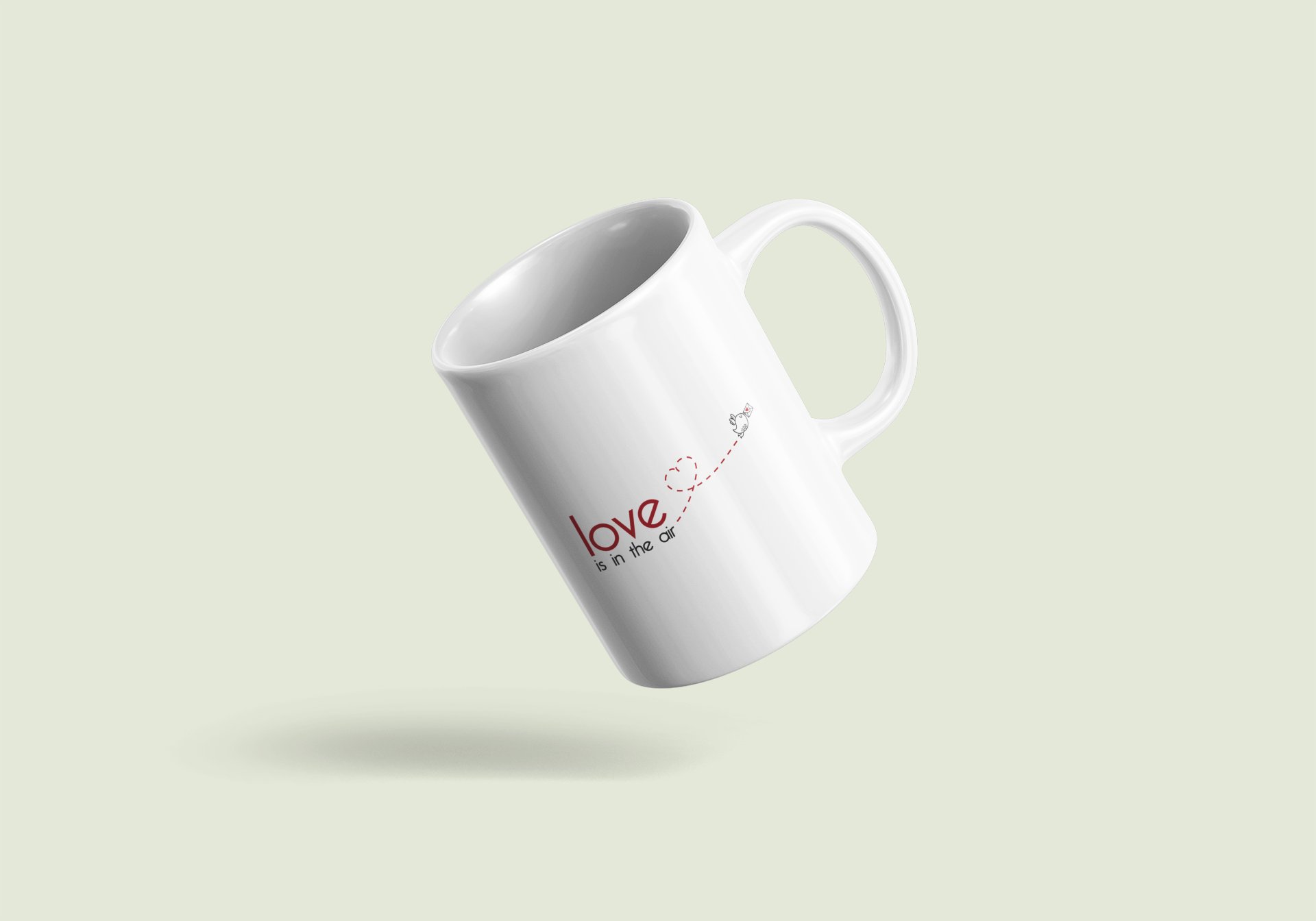 Love is in the air, a bird with letter - valentine themed printed ceramic white coffee and tea mugs/ cups