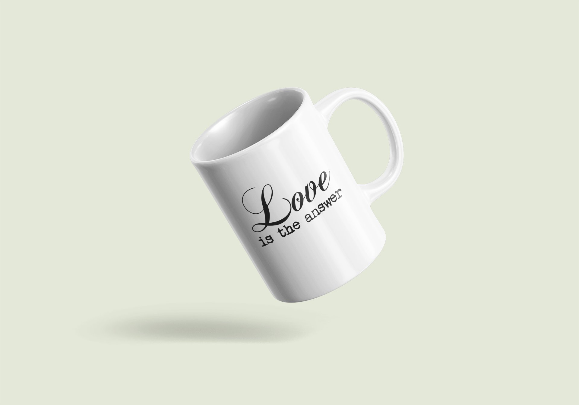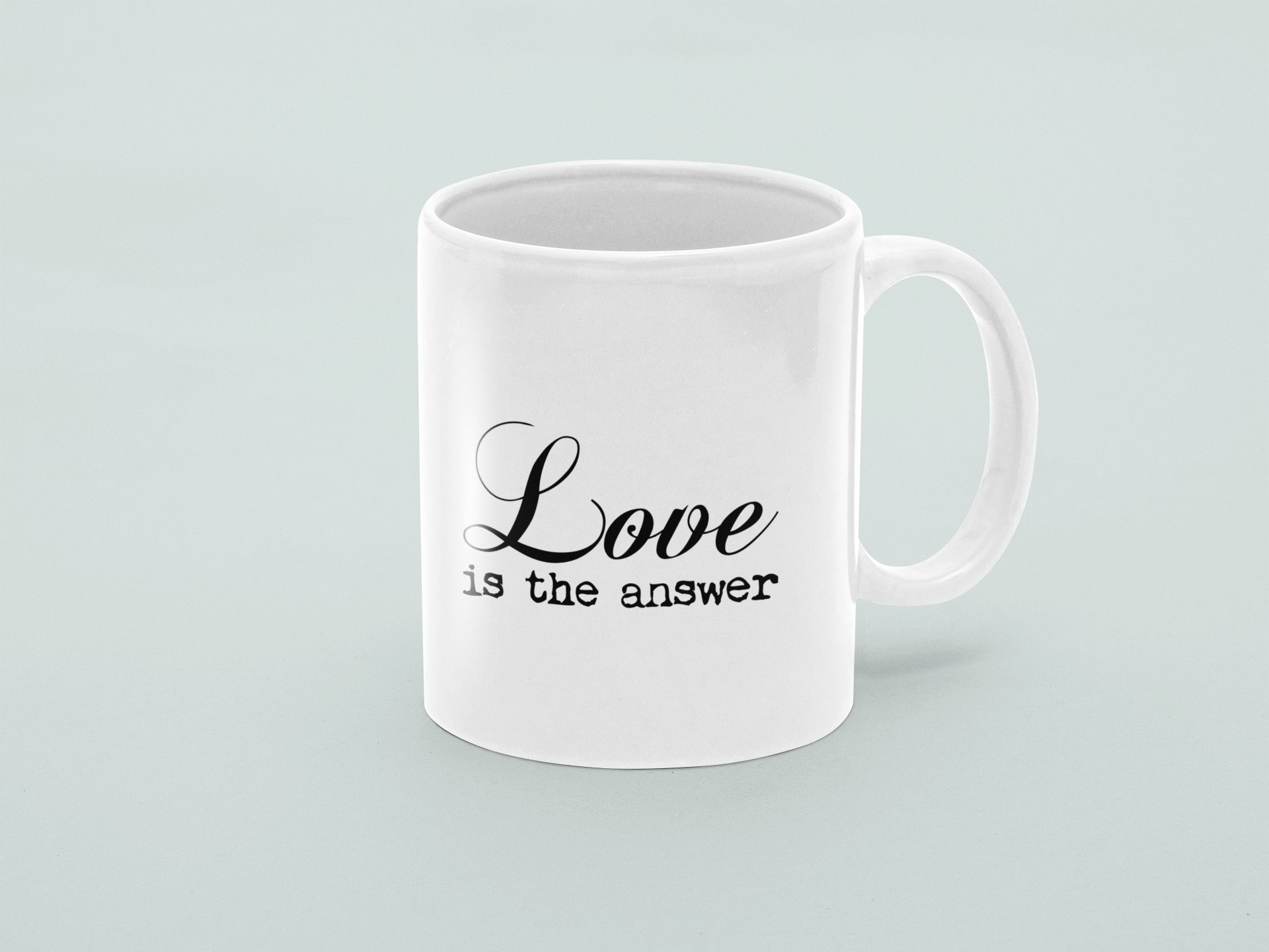 Love is the answer- valentine themed printed ceramic white coffee and tea mugs/ cups