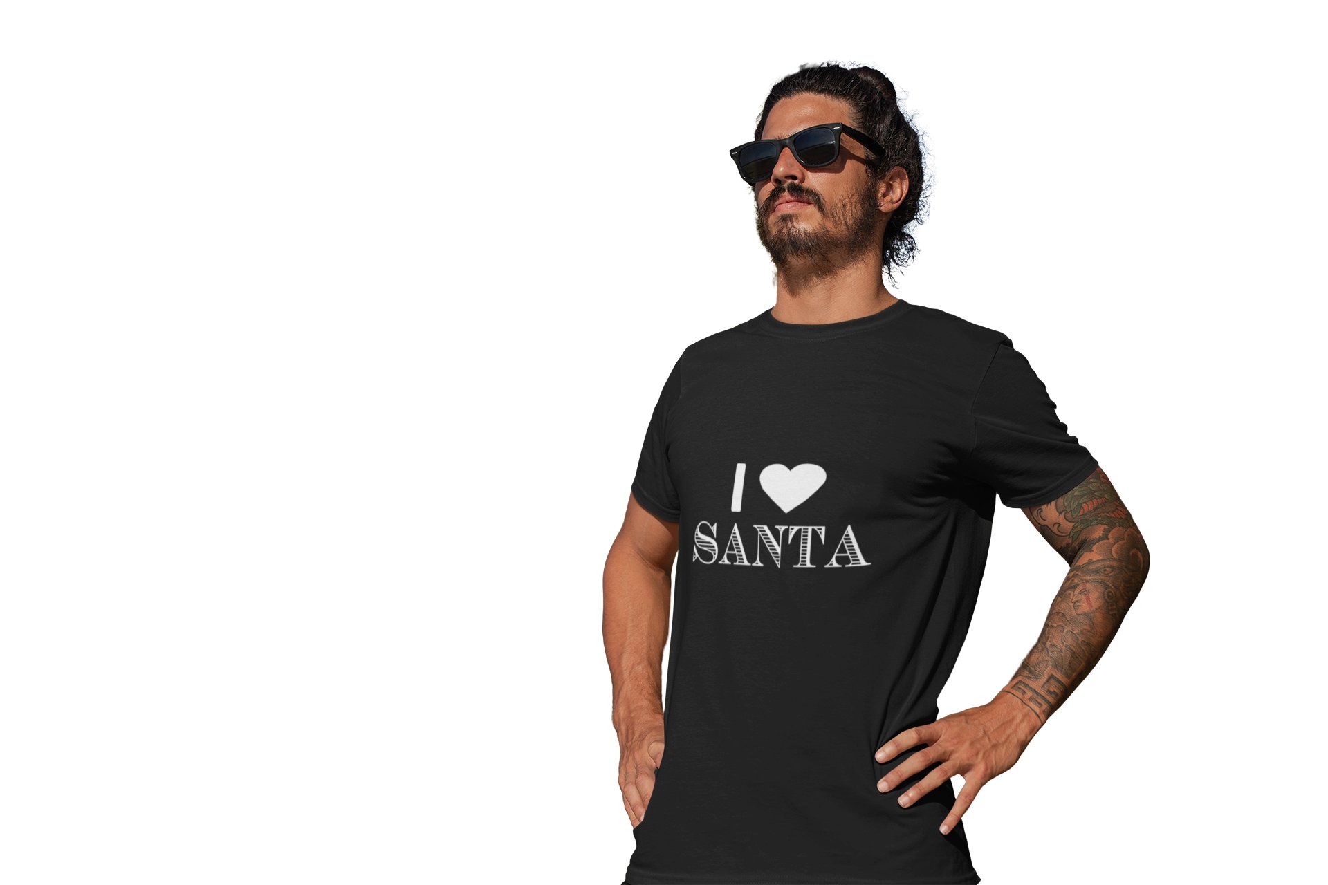 love santa -printed family themed cotton blended half-sleeve t-shirts made for men (black)