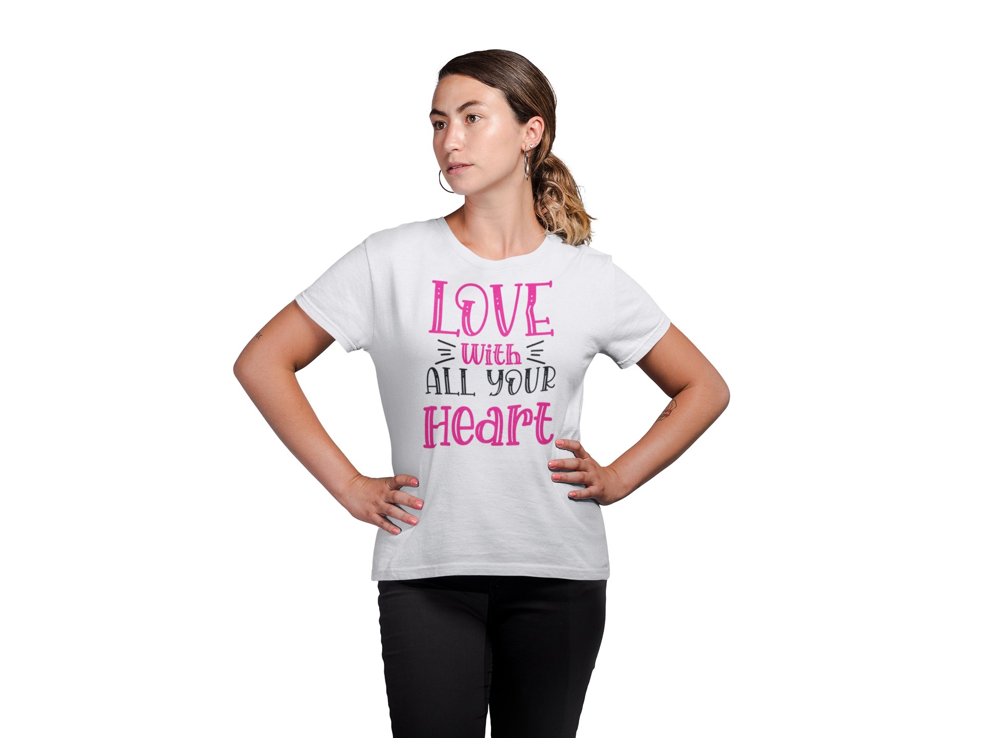 Love with All Your Heart -White- Printed T-Shirts for valentine
