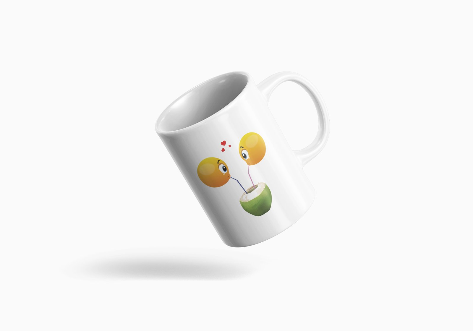 Loveable Emoji Couple Drinking Coconut Water- emoji printed ceramic white coffee and tea mugs/ cups for emoji lover people