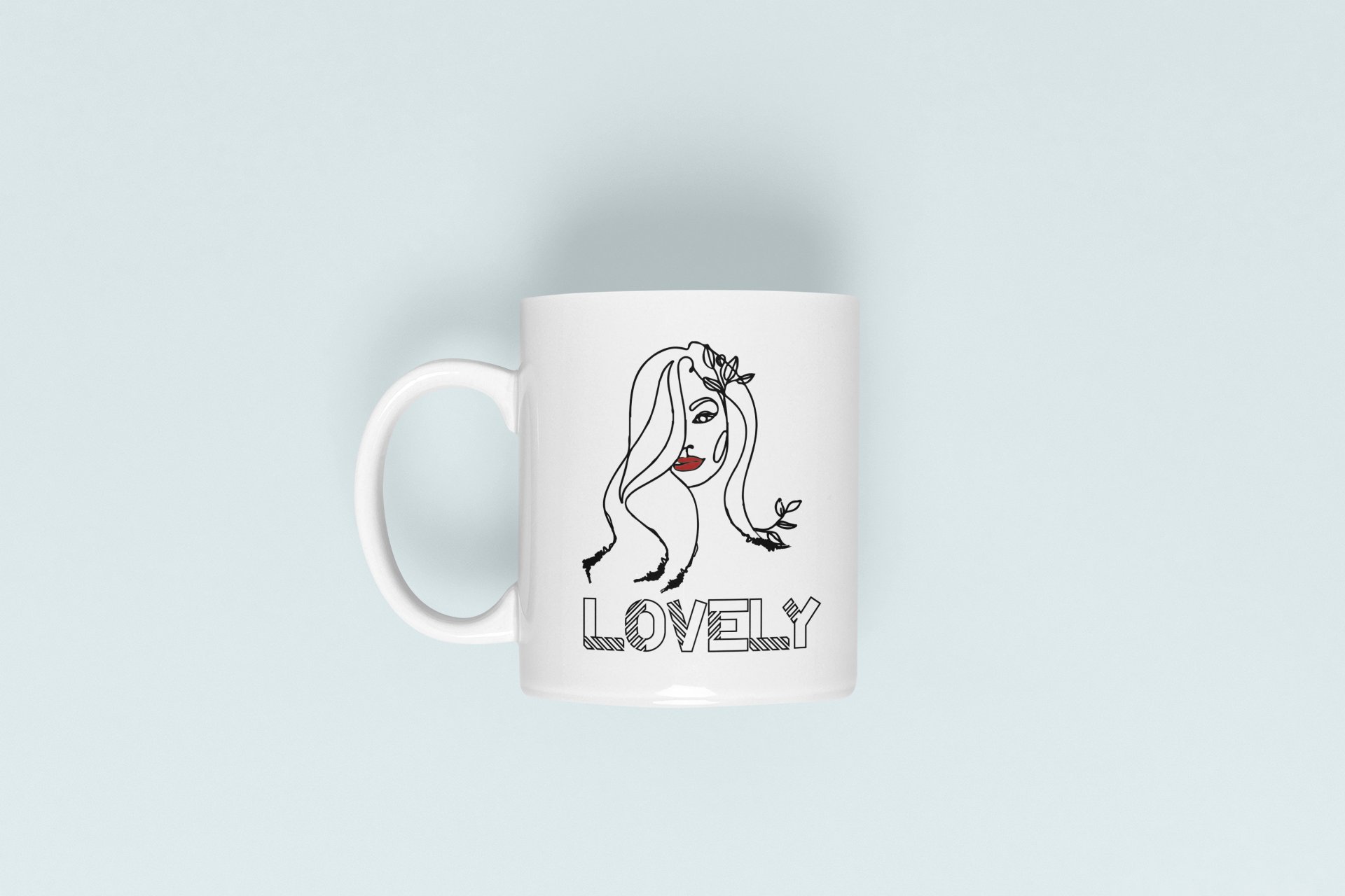Lovely - line art themed printed ceramic white coffee and tea mugs/ cups