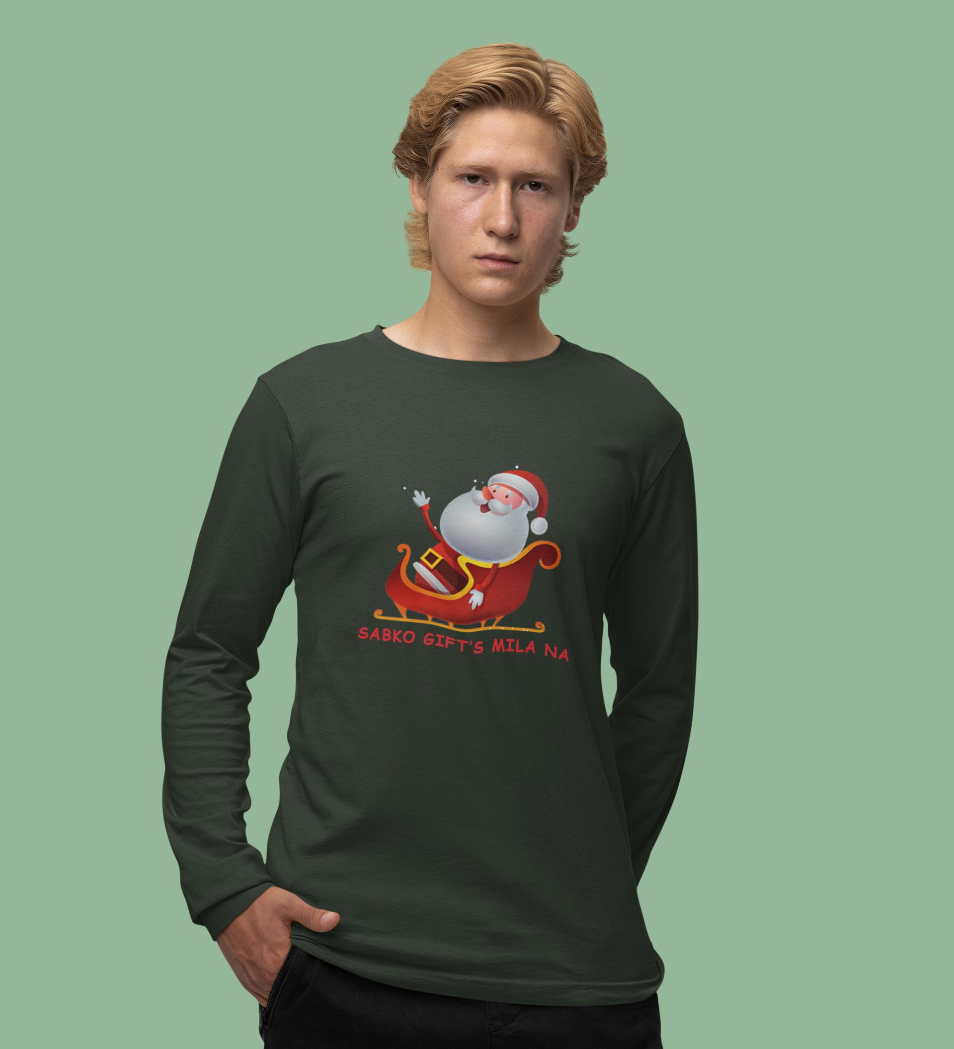 Lovely Santa: Cute And Beautiful DesignedFull Sleeve T-shirt Green Best Gift For Boys Girls