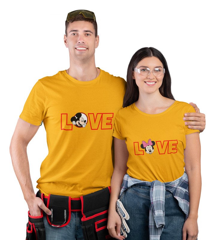 Lover's Point Printed (Yellow) T-shirts For Couple