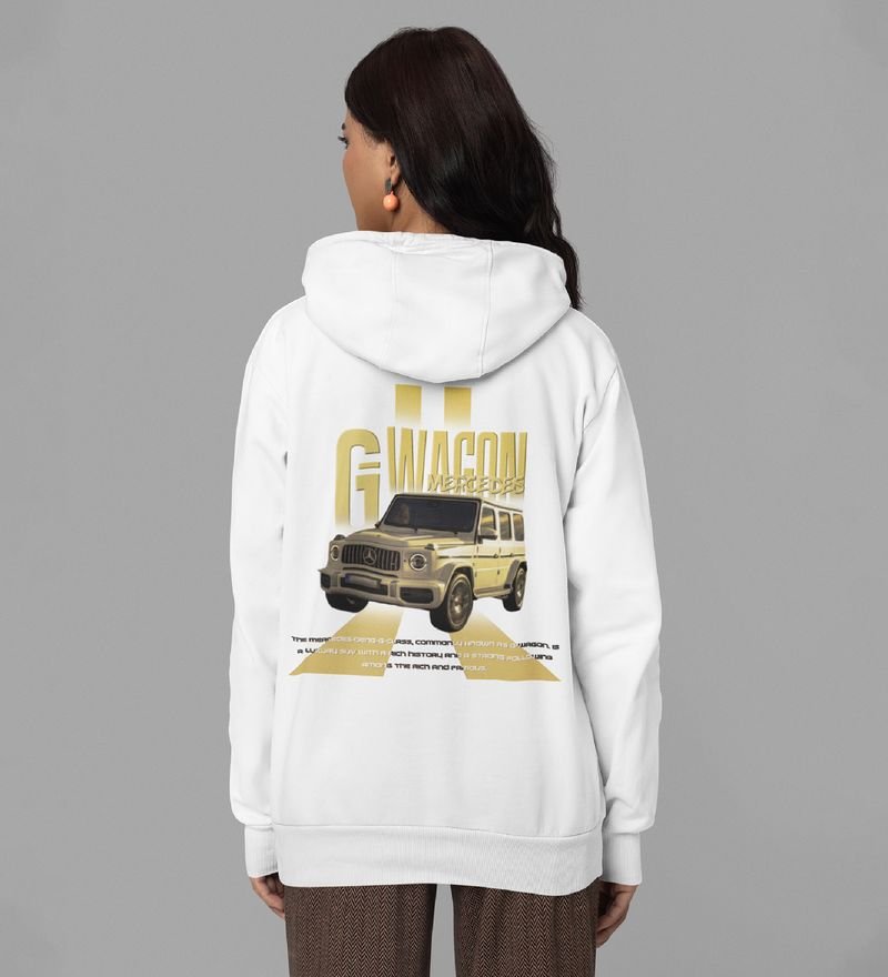 Luxury Meets Strength Iconic All-Terrain SUV Printed White Hoodie for Women