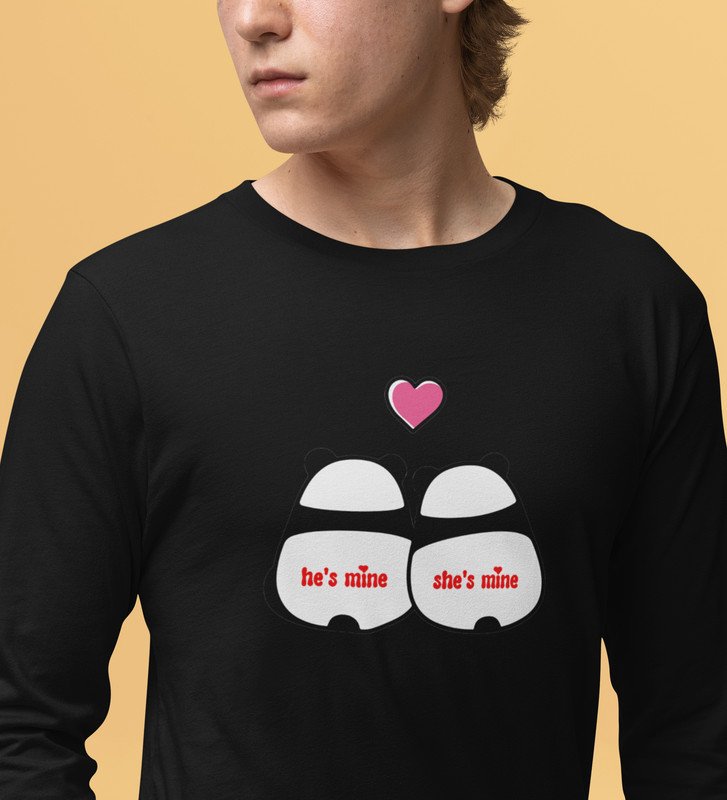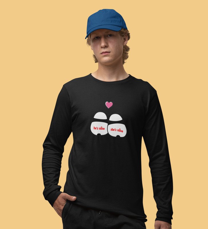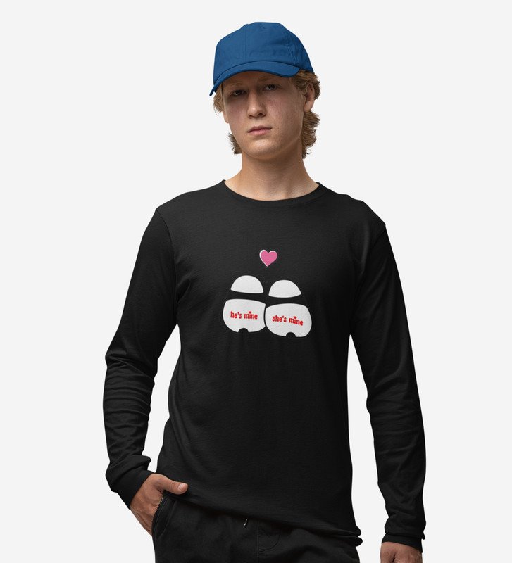 Made For Each Other: Sublimation Printed (black) Full Sleeve T-Shirt For Singles