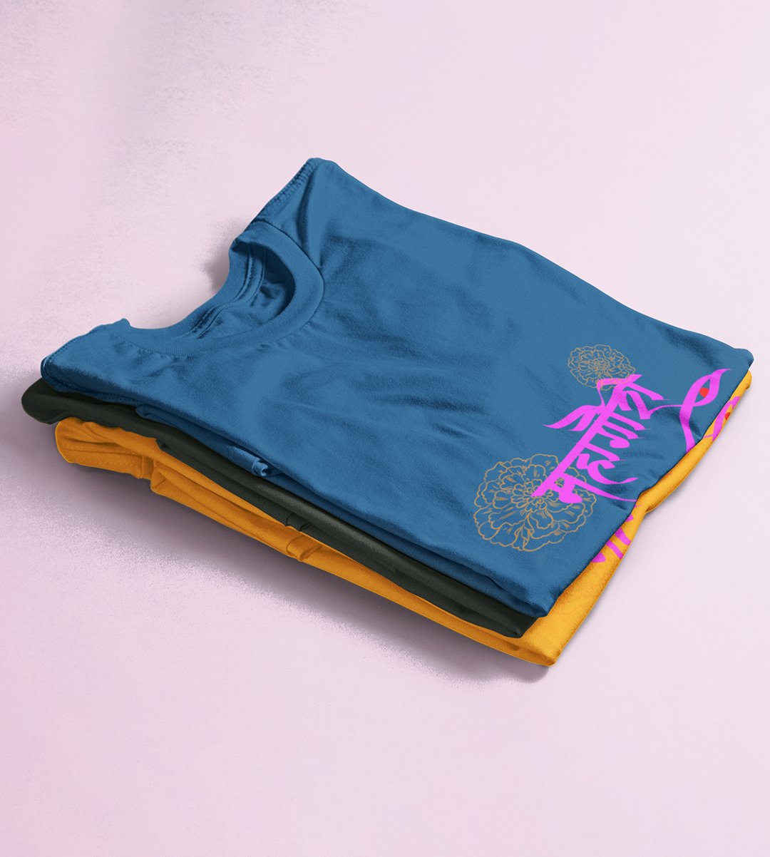 Navratri is a very auspicious festival for hindus. It takes place at the beginning of October and sometimes September. Enjoy the 9 days of festivities with full zeal and make yourself submerged in the love of Maa Durga. Navratri is also known as Durga Puja. And with this Tees, you can shine like a star during this festive season with our navratri themed cotton half sleeved Tshirts. You can pair our t-shirts with trousers and denim of your choice and make it a weekday smart casual or weekend wear. This is durable. This tshirt is smooth and soft which makes you comfortable to wear during all seasons. The printing in it is durable and odourless. It has five sizes, S,M,L,XL,XXL. The Tshirt colour is intact even after repeated washes. It can be kept in your wardrobe and hangers. Please avoid washing mashine to clean this Tee, it may affect the print. Hand wash only. We have brought you many navratri related designs printed on our different colour Tshirts to choose from. Grab it now.