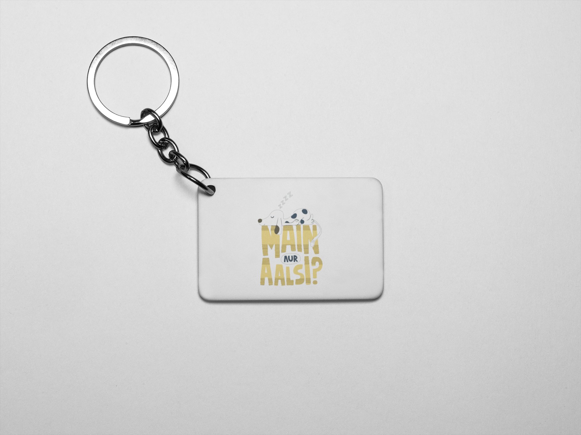 Main Aur Aalsi? - acryllic printed white keychains/ keyrings for bollywood lover people(Pack Of 2)
