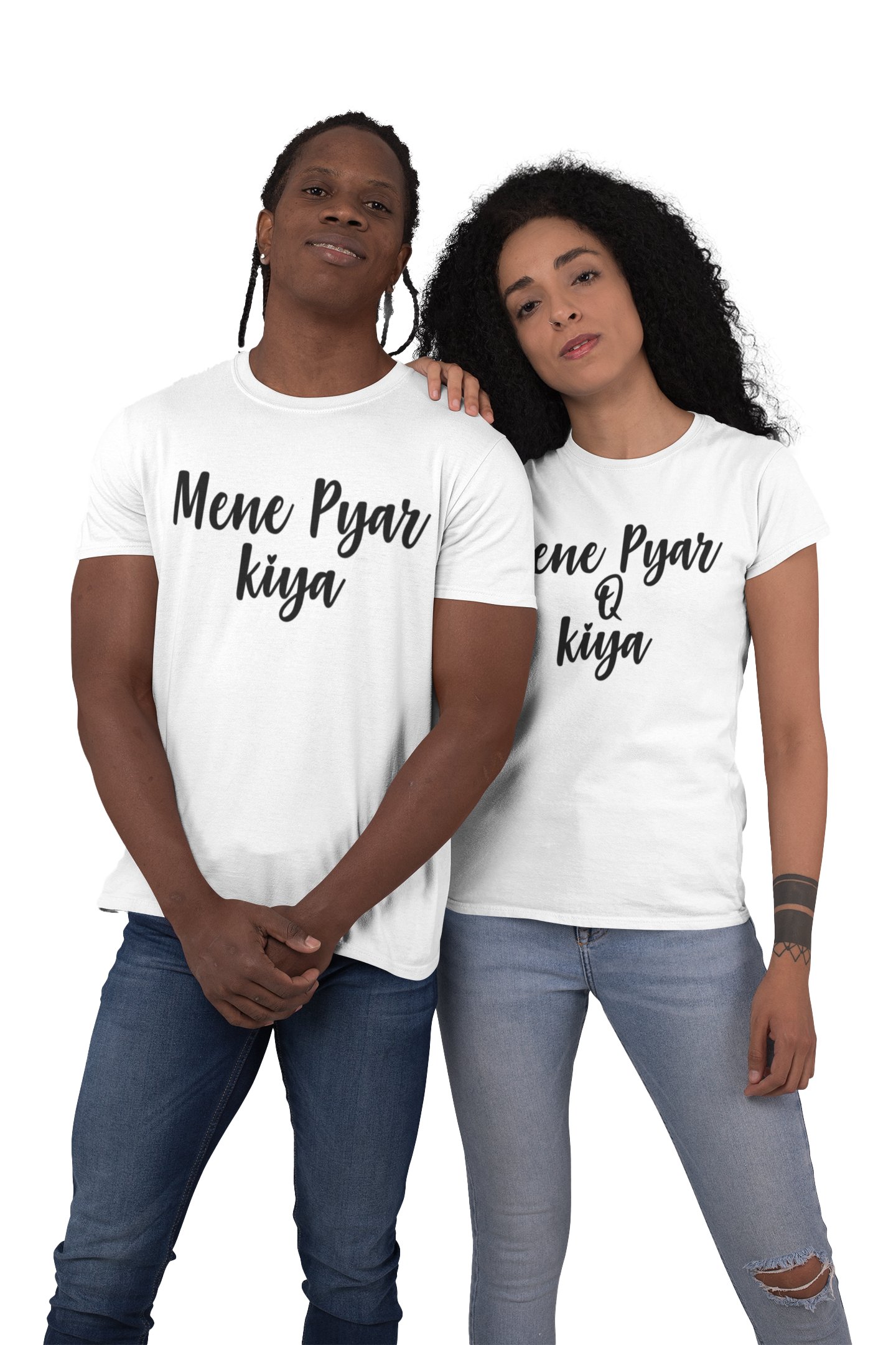Maine Pyar Kiya (White T)- Couple Printed T-Shirts-Lover T-shirts