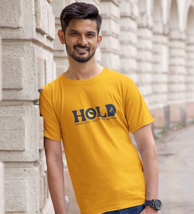 Make Yourself Rich Wings Yellow Round Neck Cotton Half Sleeved Men's T Shirt with Printed Graphics