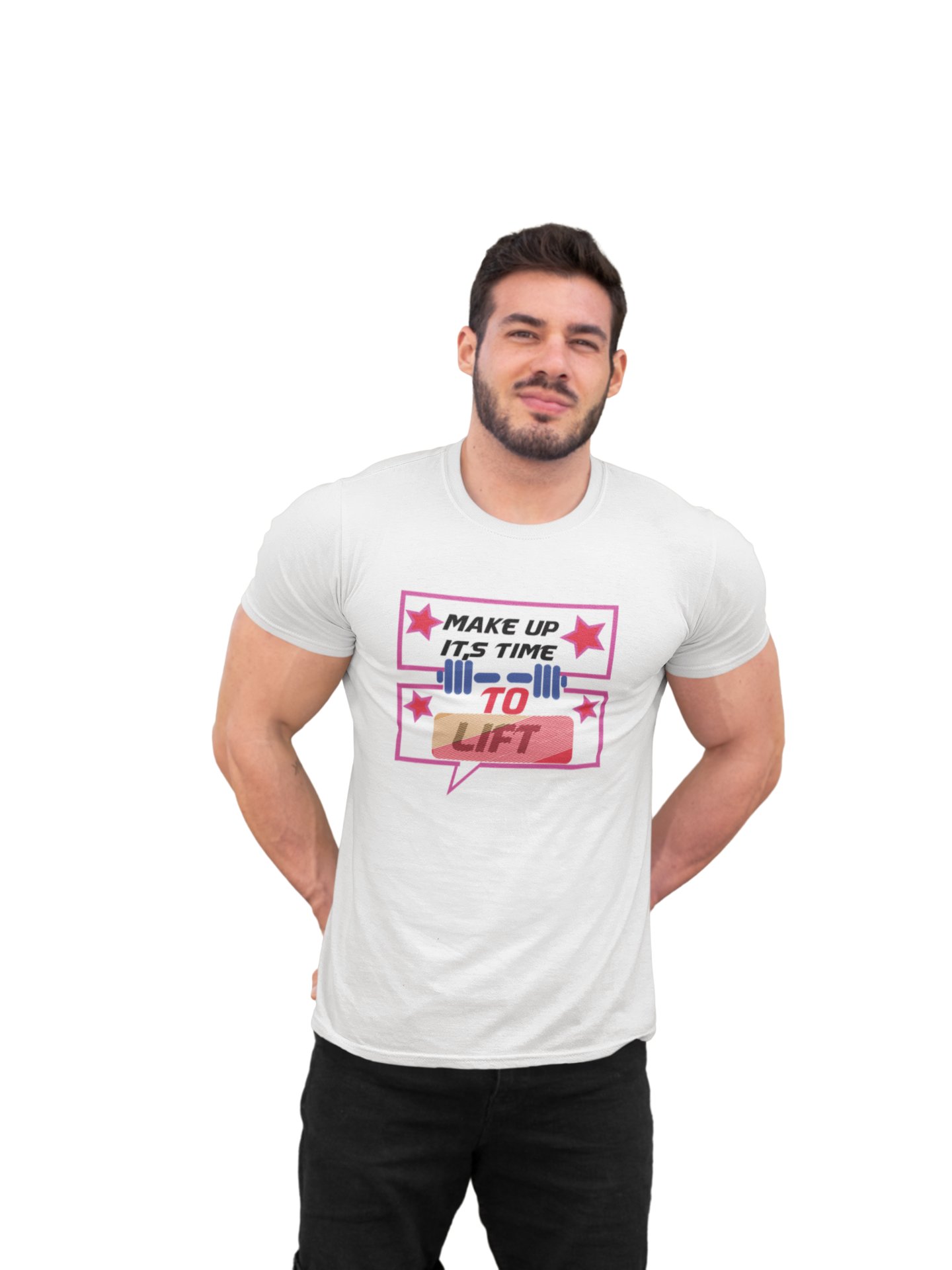 Makeup, Its Time To Lift, Round Neck Gym Tshirt (White Tshirt) - Clothes for Gym Lovers - Suitable for Gym Going Person - Foremost Gifting Material for Your Friends and Close Ones