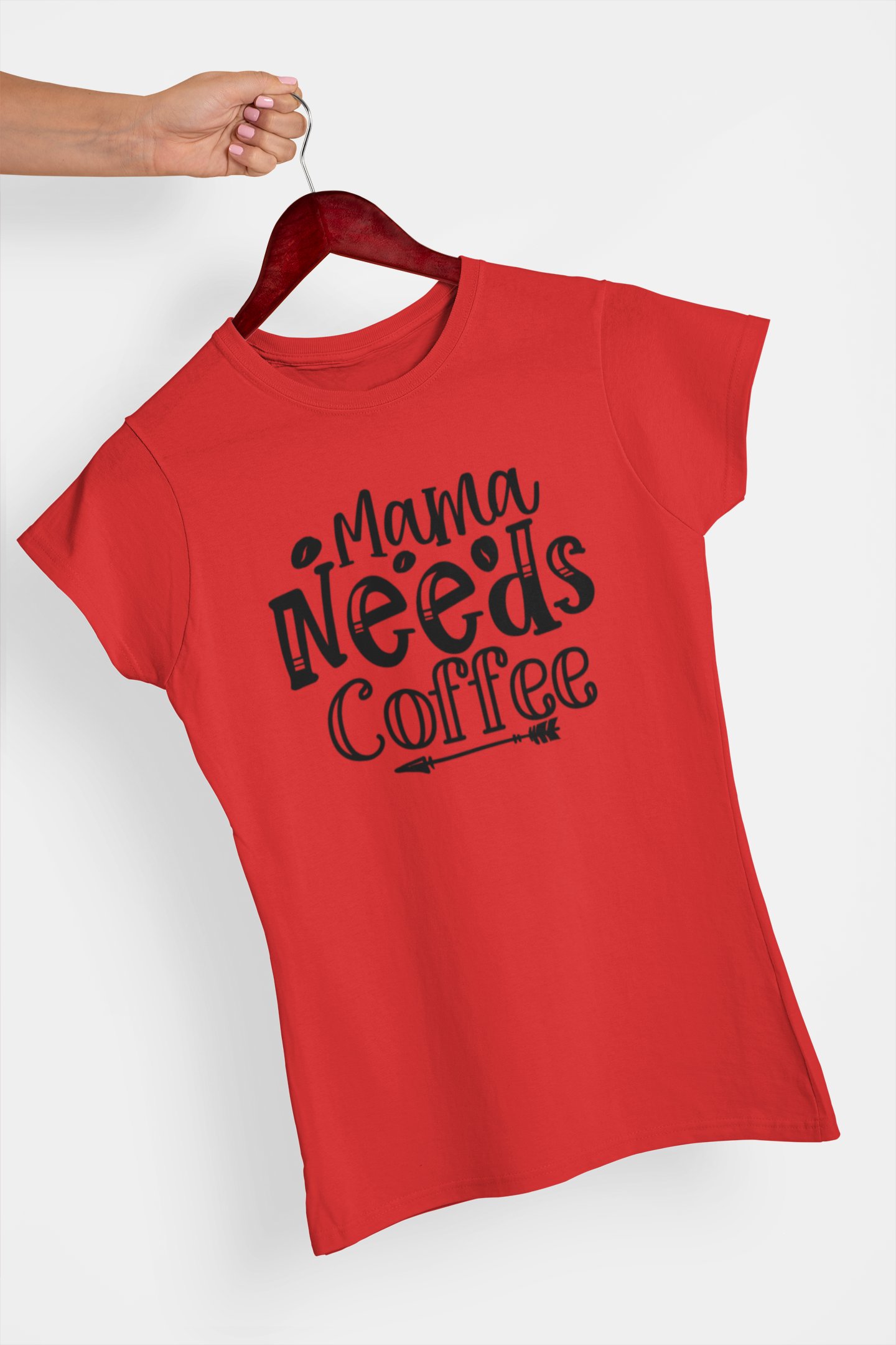 Mama needs Coffee - Red - printed t shirt - comfortable round neck cotton.