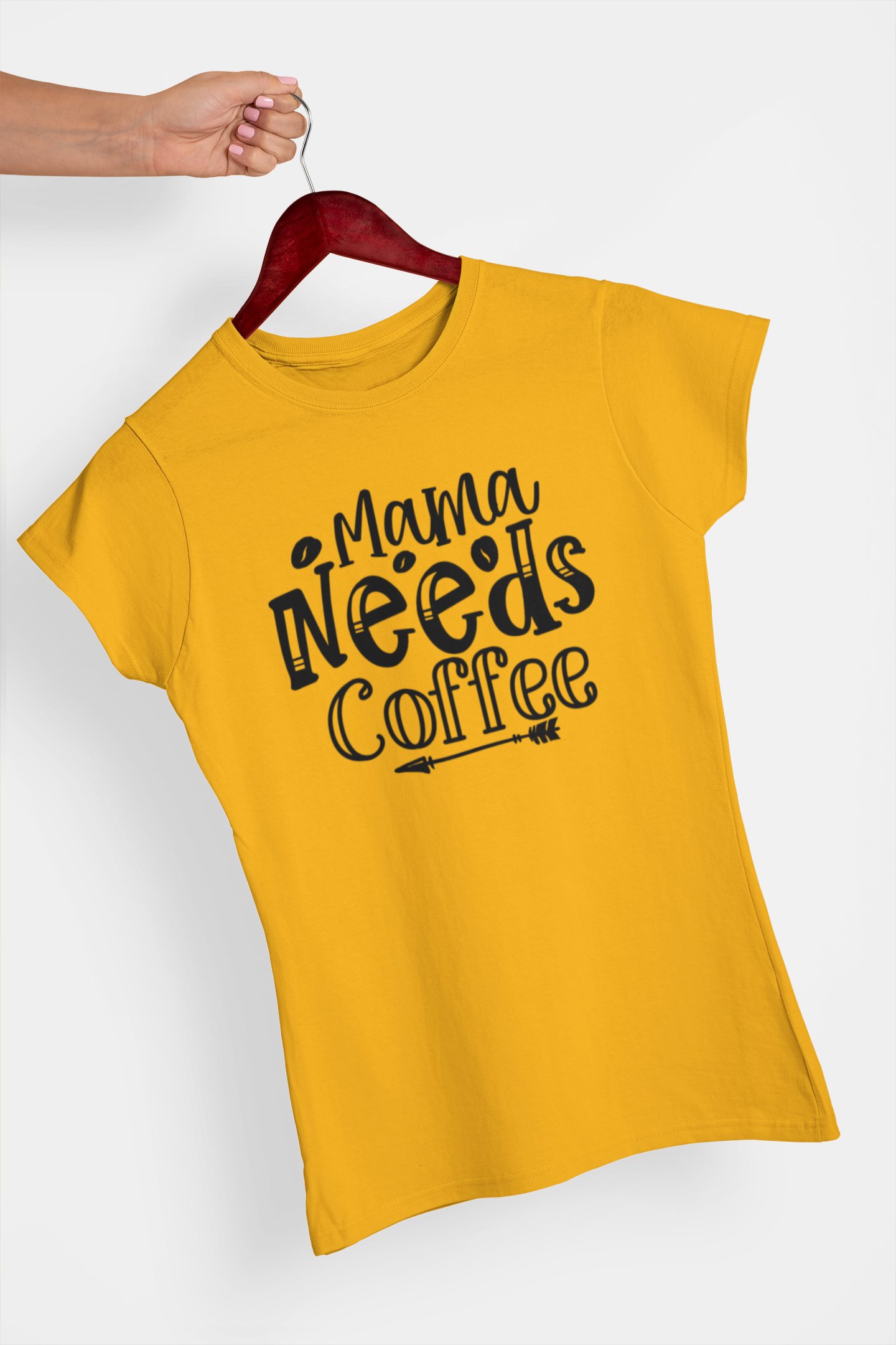 Mama needs Coffee - Yellow - printed t shirt - comfortable round neck cotton.
