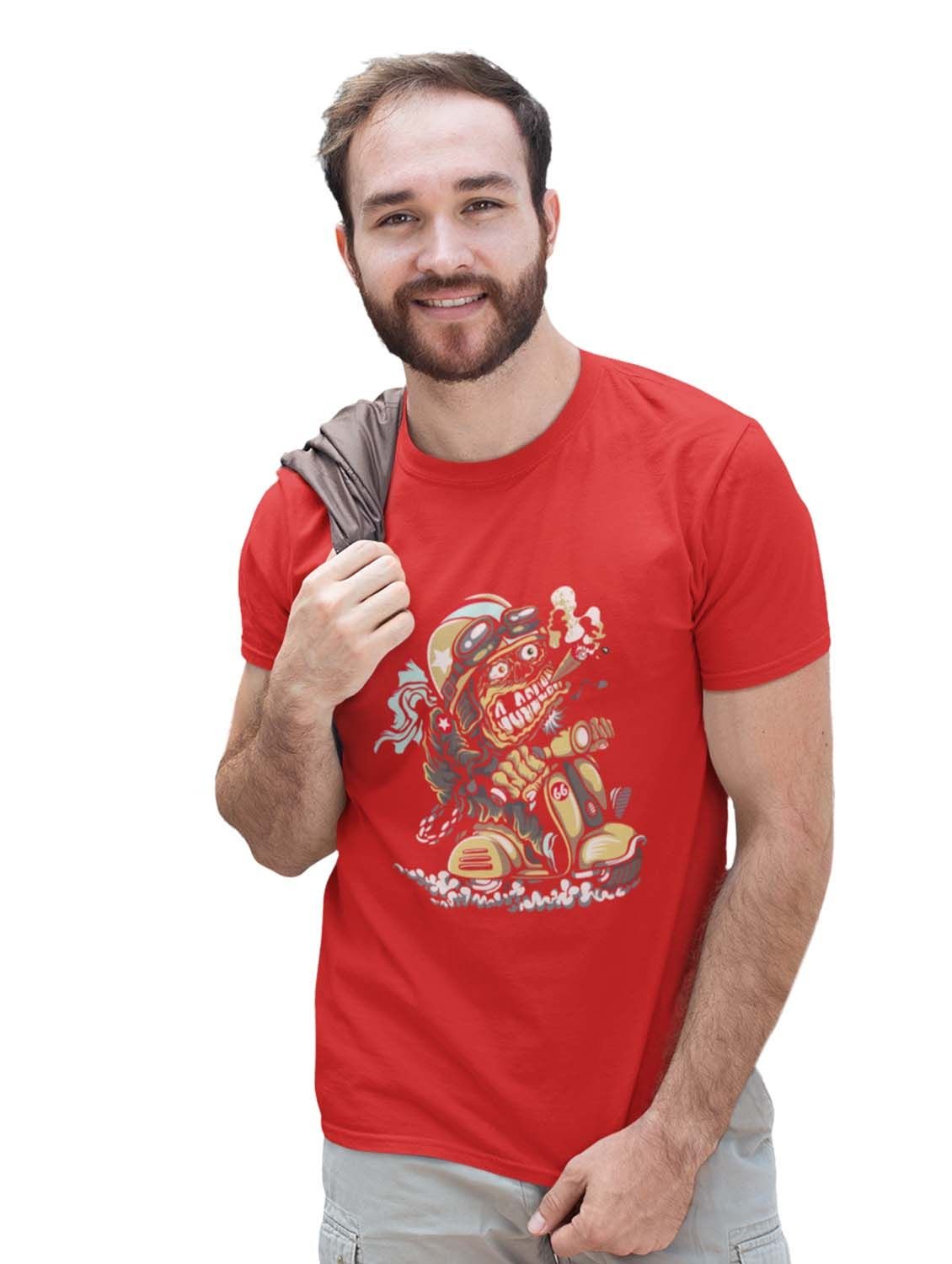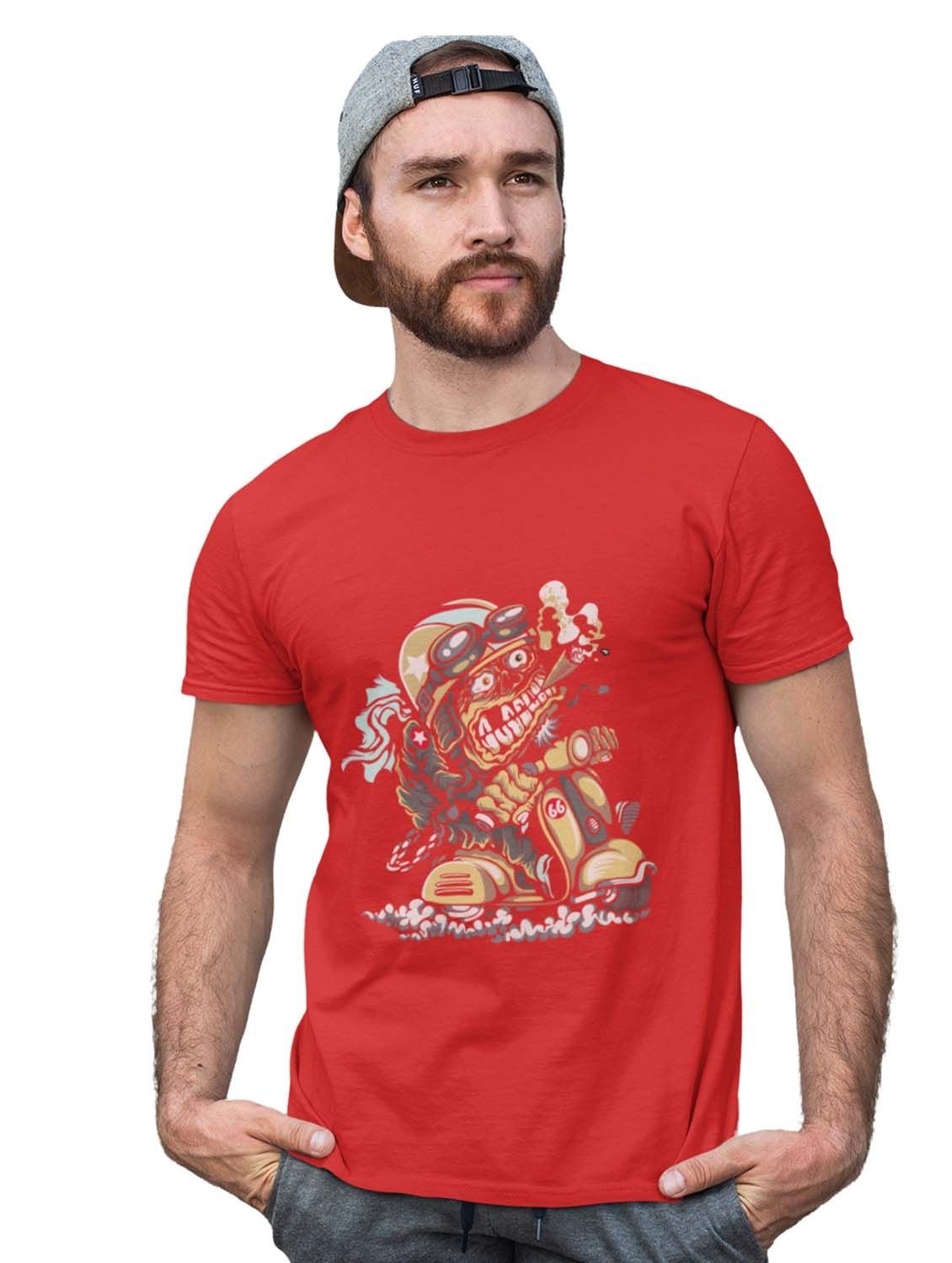 Demon- The Rider Red Round Neck Cotton Half Sleeved T-Shirt with Printed Graphics