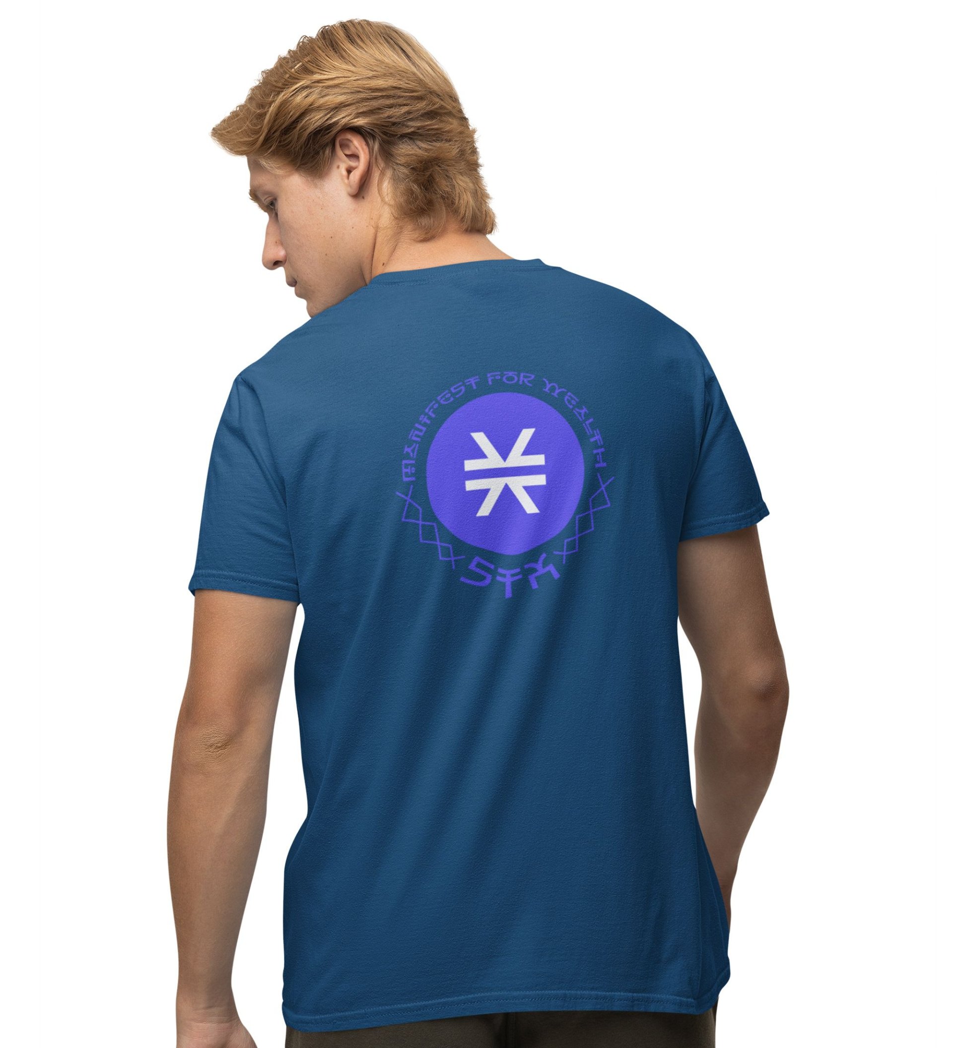 Manifest For Wealth Wings Blue Round Neck Cotton Half Sleeved Men's T Shirt with Printed Graphics