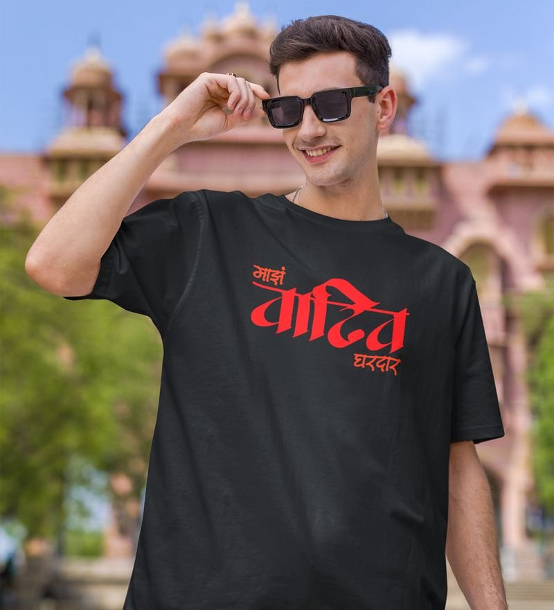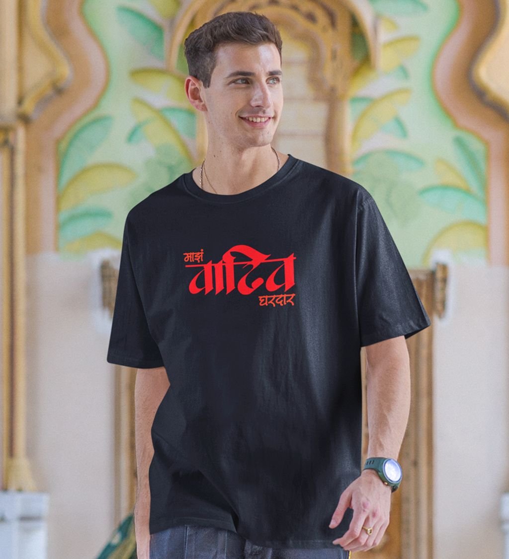 Maratha Family Black Round Neck Cotton Half Sleeved Men T Shirt with Printed Graphics