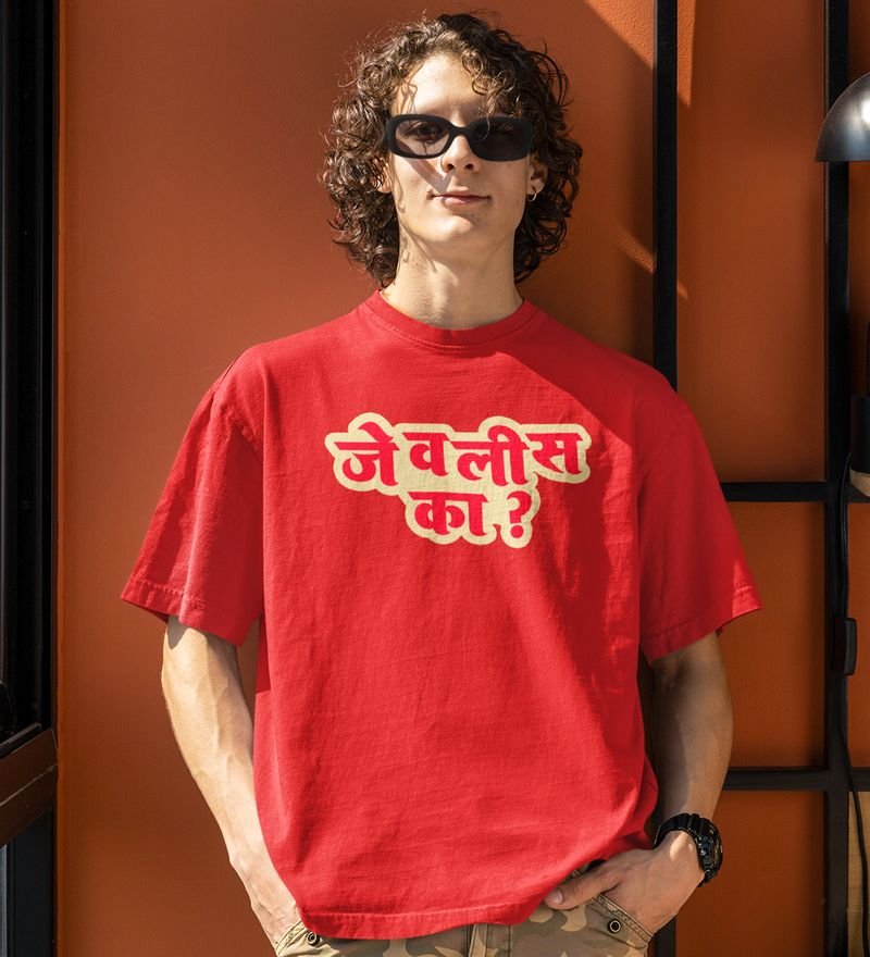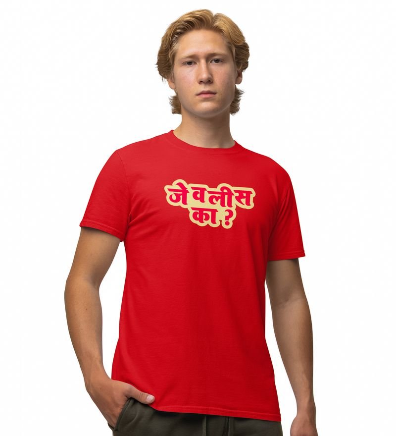 Marathi Flirt Red Round Neck Cotton Half Sleeved Men T Shirt with Printed Graphics