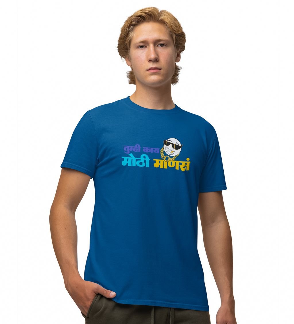 Marathi Pride Blue Round Neck Cotton Half Sleeved Mens T Shirt with Printed Graphics