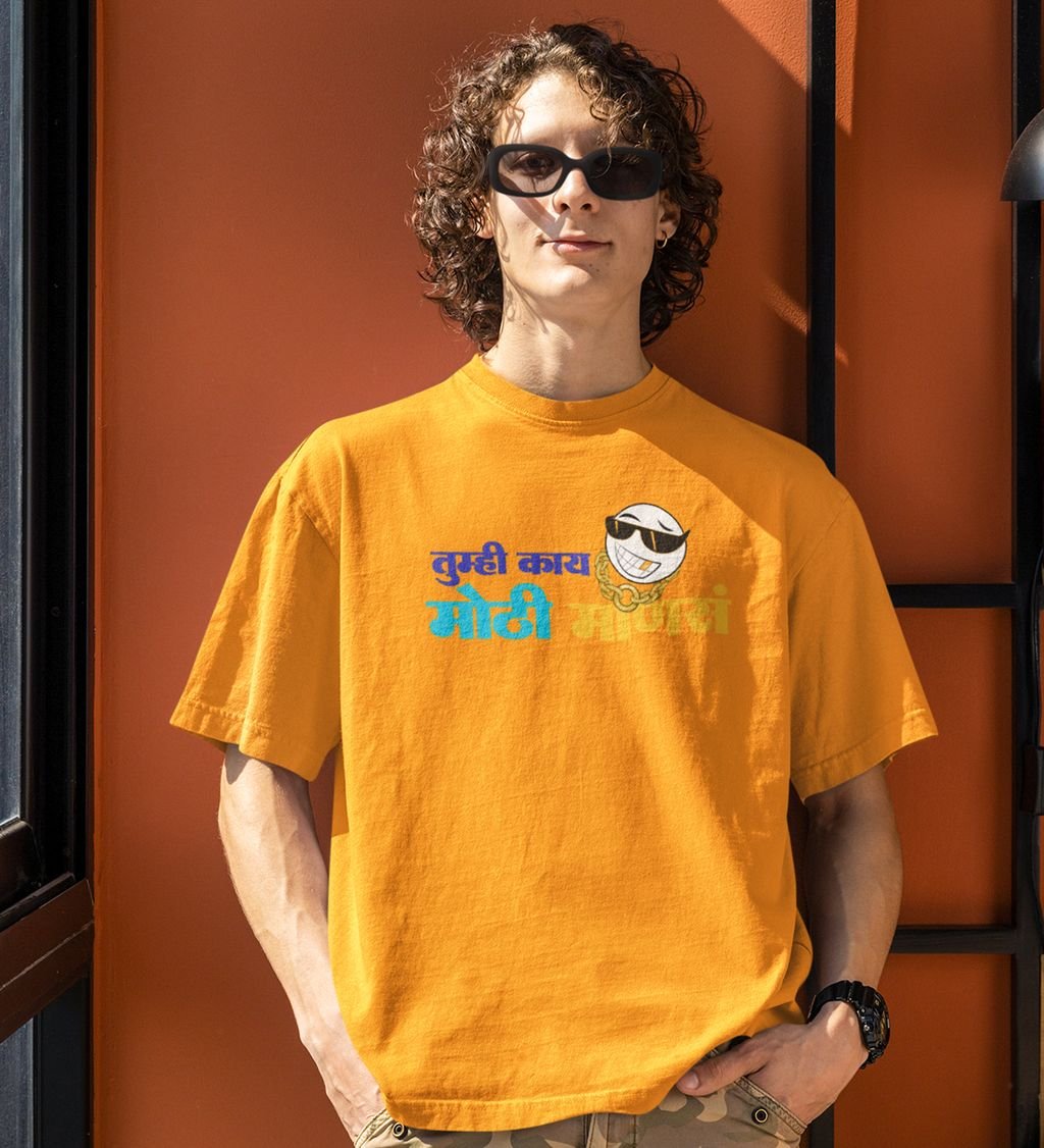 Marathi Pride Yellow Round Neck Cotton Half Sleeved Mens T Shirt with Printed Graphics