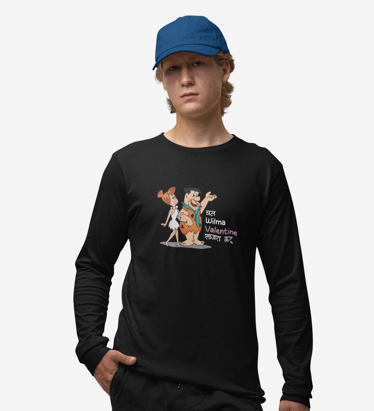 Marathi StoneAge Man: (black) Full Sleeve T-Shirt For Singles