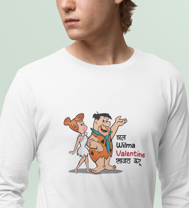 Marathi StoneAge Man: (white) Full Sleeve T-Shirt For Singles