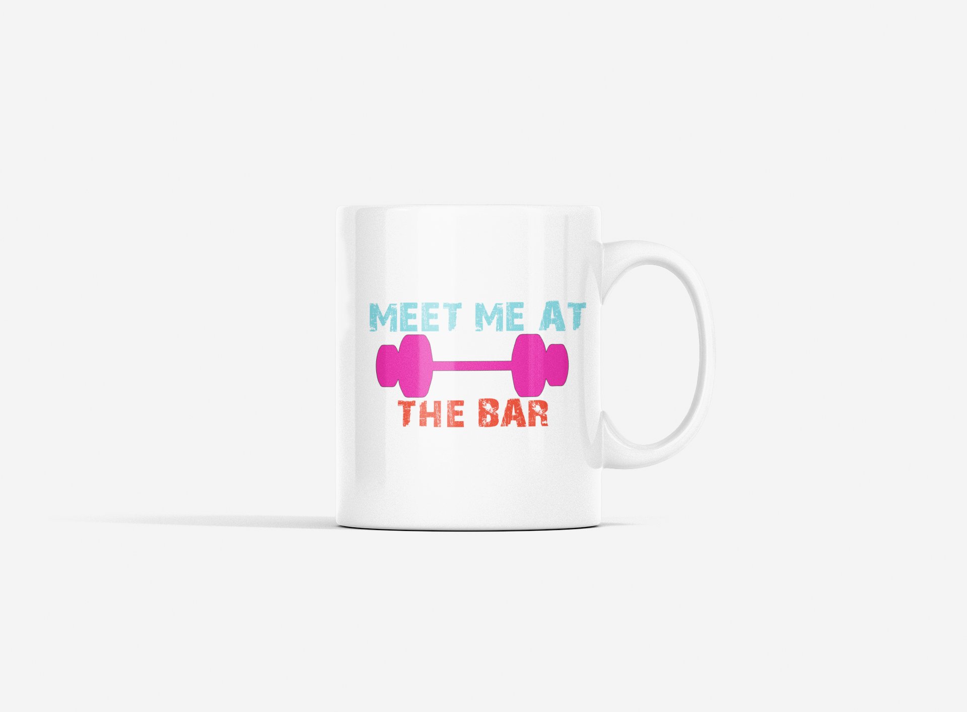 Meet Me At The Bar,(BG Pink, Orange and Blue) - gym themed printed ceramic white coffee and tea mugs/ cups for gym lovers