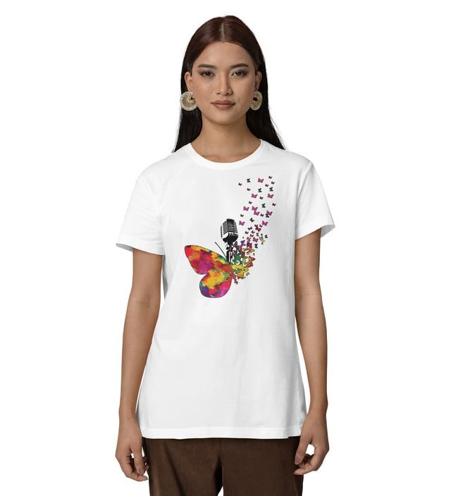 Melody in Motion: Artistic Butterfly and Sound Graphic Printed Black T-Shirt