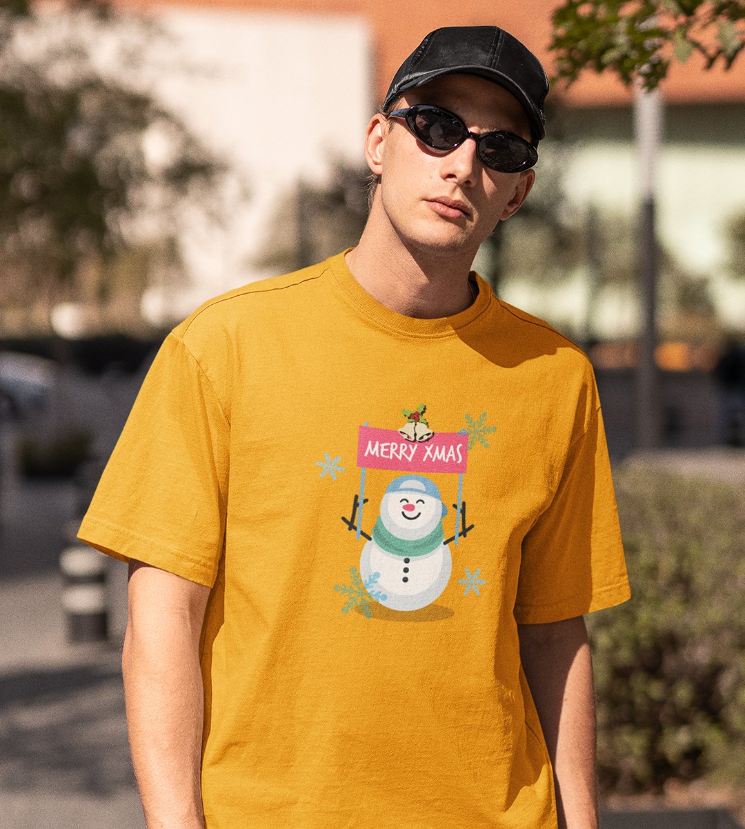 Merry Xmas : Dashing Printed T-shirt (Yellow) Best Gift For Secret Santa