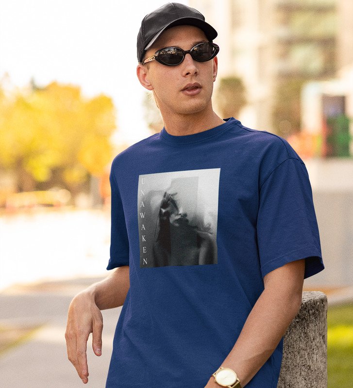 Mesmerized, Modern Maverick: Blue Signature Front Graphic Oversized Tee for Men