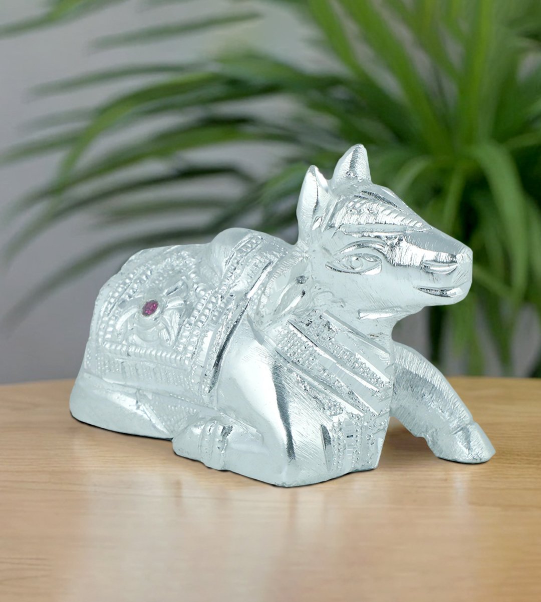 The silver Mahadev's nandi is made of special metal alloy which makes them very sturdy and durable. Mahadev's bhakt will love to buy this product. They are light weight and can be kept anywhere. Add an element of beauty to your home decor. It can be kept in showpiece rack, center table or in your pooja ghar. It is shiny and adorable. It can also be an ideal addition to your living room. It could be a memorable gift to your house warming, festive occasions, shop inaugration or any pooja, it can be a memorable return gift. What can be a better gift than a handcrafted antique metal statue for your loved ones? Gift it to yourself or Friend, Spouse, Mother, Father, Grand Parents.