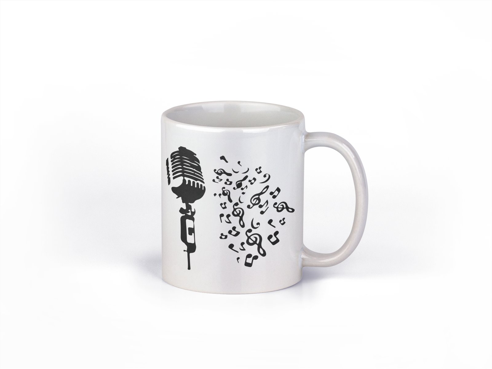 Microphone & Music Notes- music themed printed ceramic white coffee and tea mugs/ cups for music lovers