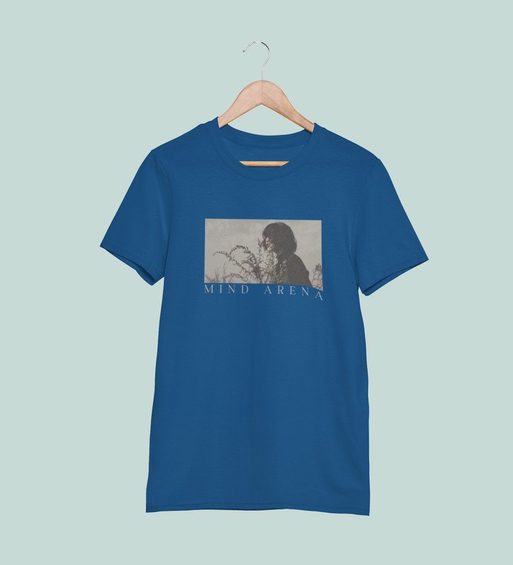 Mind Arena, Casual Couture: Blue Front Printed Round Neck Tee - Men's Contemporary Style