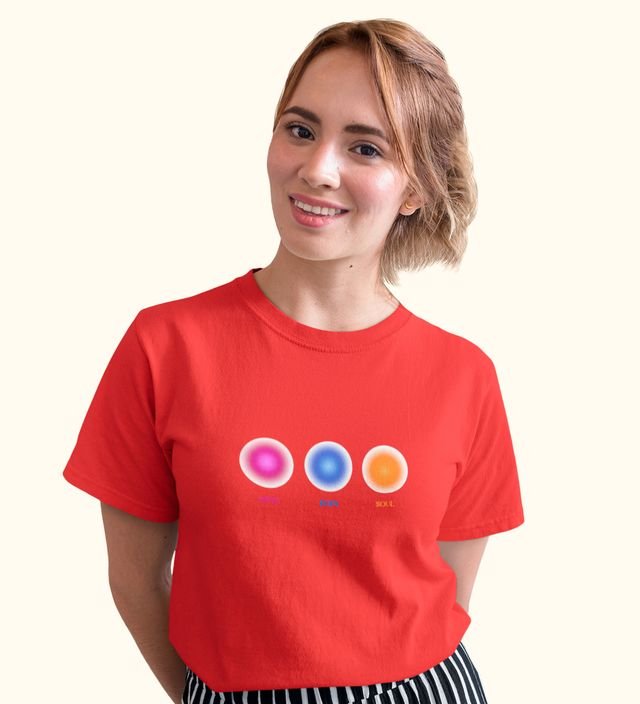 Mind, Body, Soul Red Round Neck Cotton Half Sleeved Women T-Shirt with Printed Graphics
