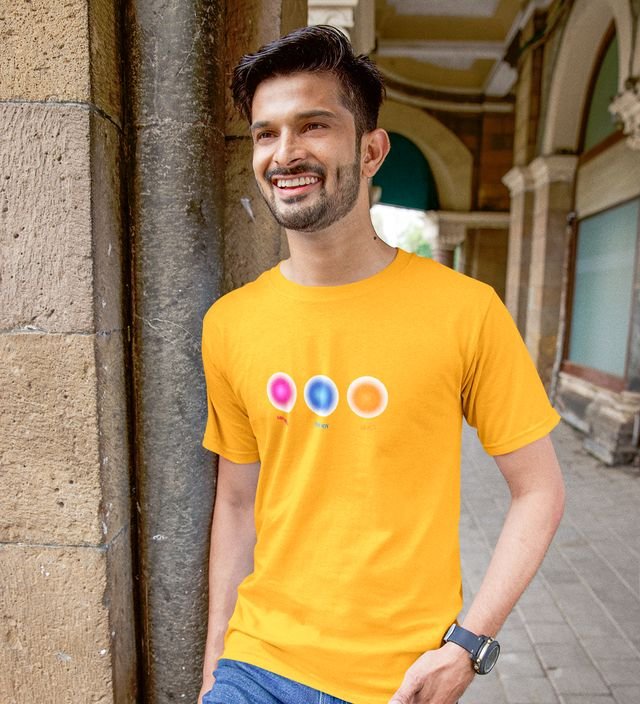 Mind, Body, Soul Yellow Round Neck Cotton Half Sleeved Men T-Shirt with Printed Graphics