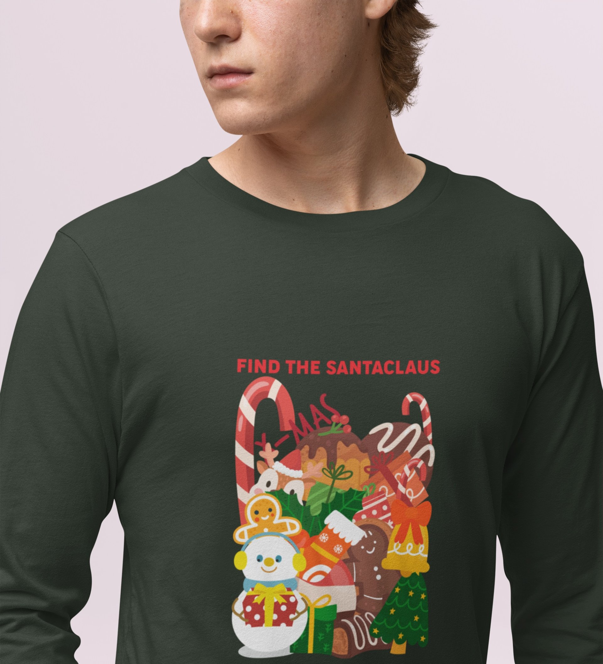 Missing Santa: Mysterious DesignedFull Sleeve T-shirt Green Unique Gifts For Secret Santa