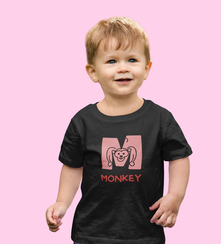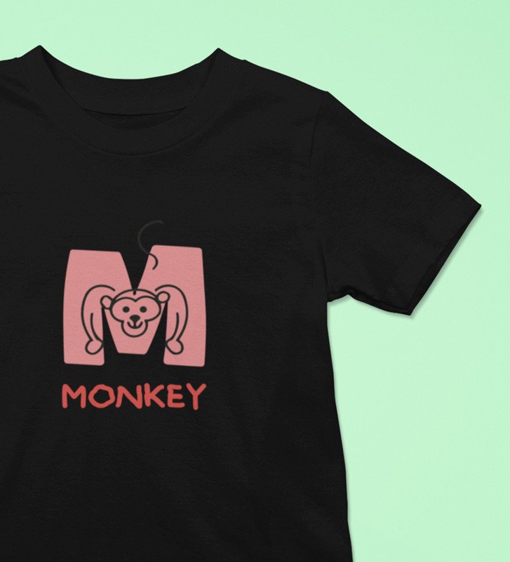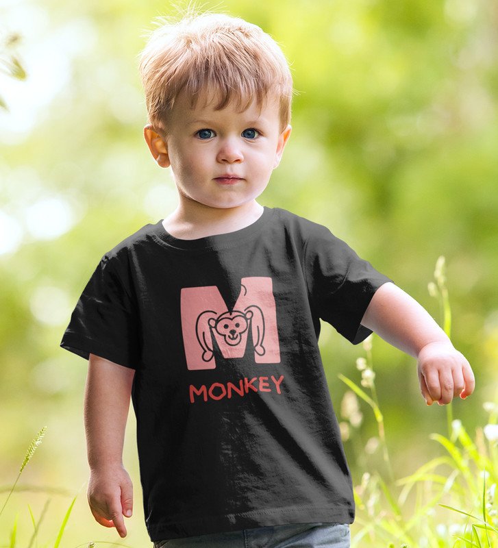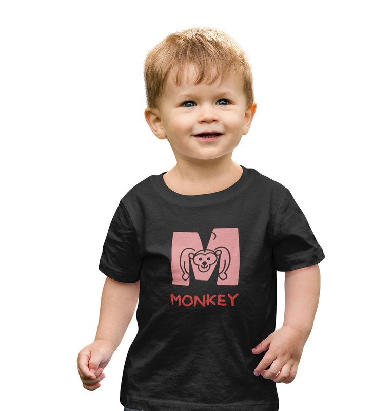 Monkey Love, Boys Cotton Text Print Tshirt (black)