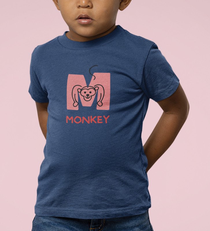 Monkey Love, Boys Cotton Text Print Tshirt (Navy blue)