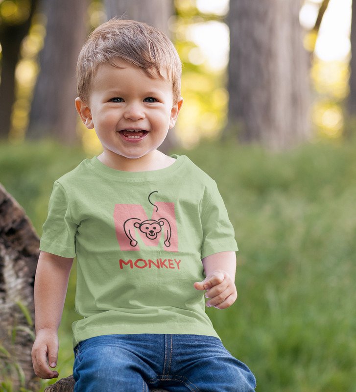 Monkey Love, Boys Cotton Text Print tshirt (olive)