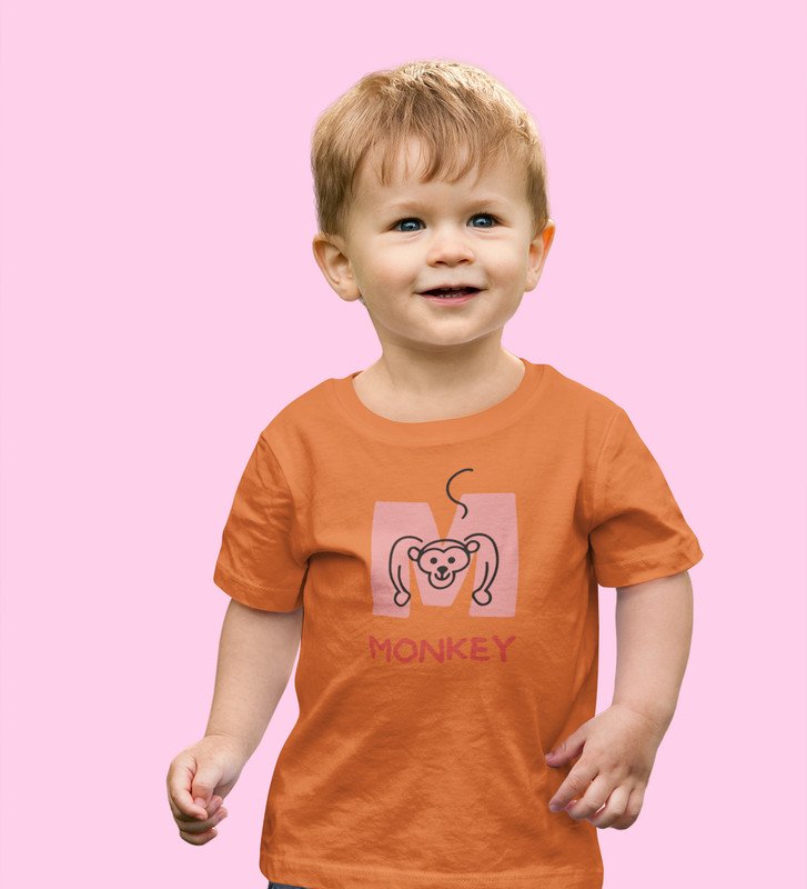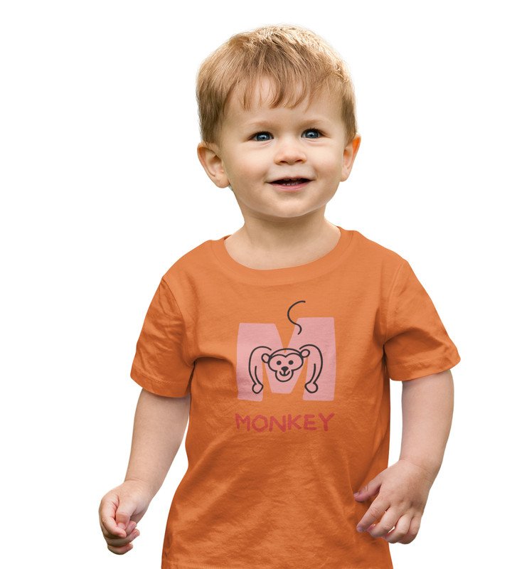 Monkey Love, Boys Cotton Text Print Tshirt (orange)