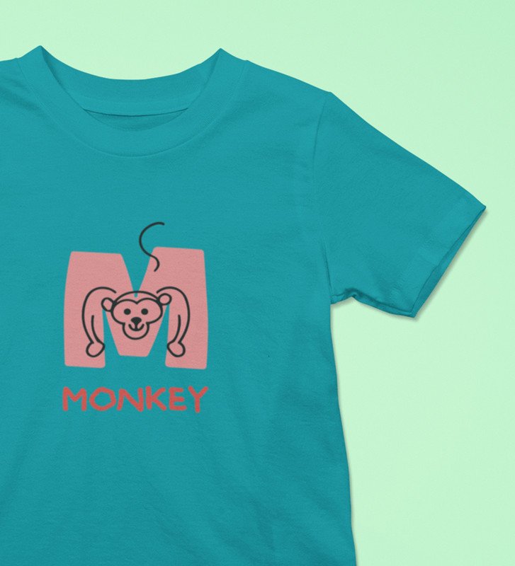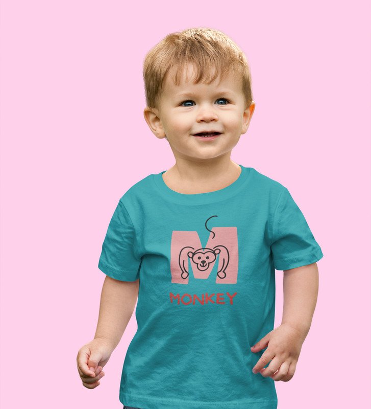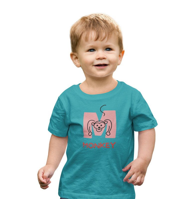 Monkey Love, Boys Cotton Text Print tshirt (teal)